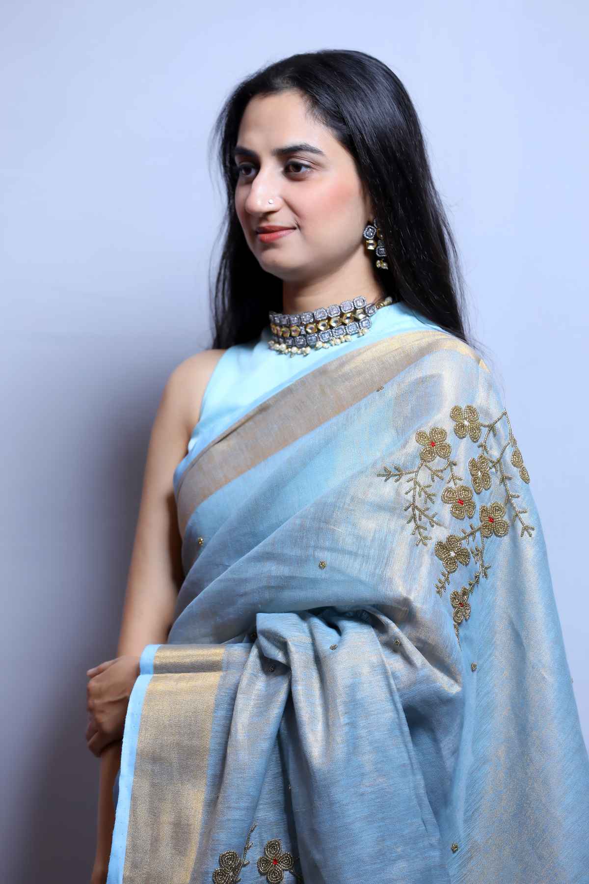 Sky Embrace Linen Tissue Saree